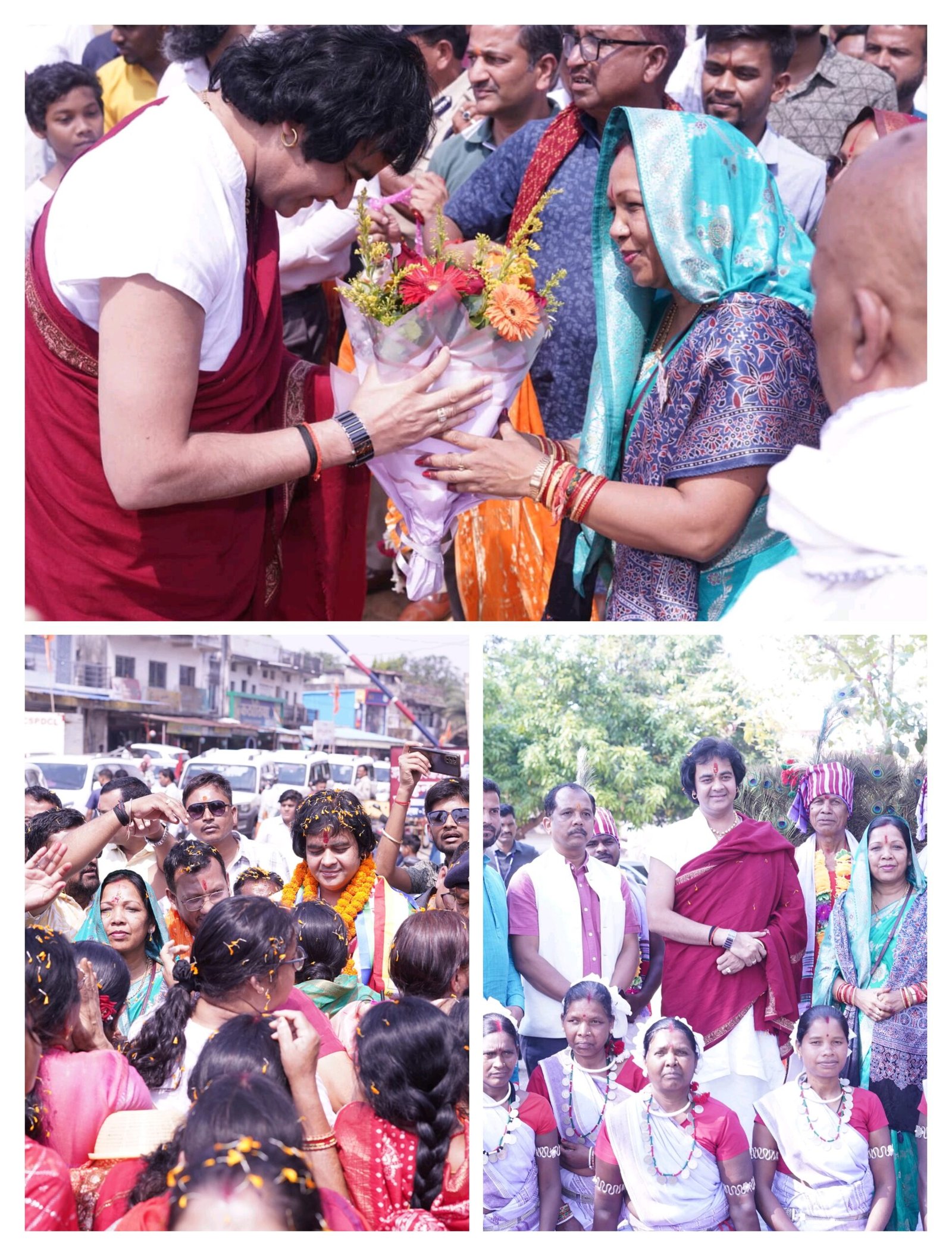 इसके पश्चात जय स्तंभ चौक पर पारंपरिक वाद्य-यंत्रों, गाजे-बाजे और जयघोष के बीच भव्य स्वागत हुआ। नगर की महिलाओं ने आरती उतारकर संत का अभिनंदन किया, जिससे पूरा वातावरण भक्ति और श्रद्धा से सराबोर हो गया।