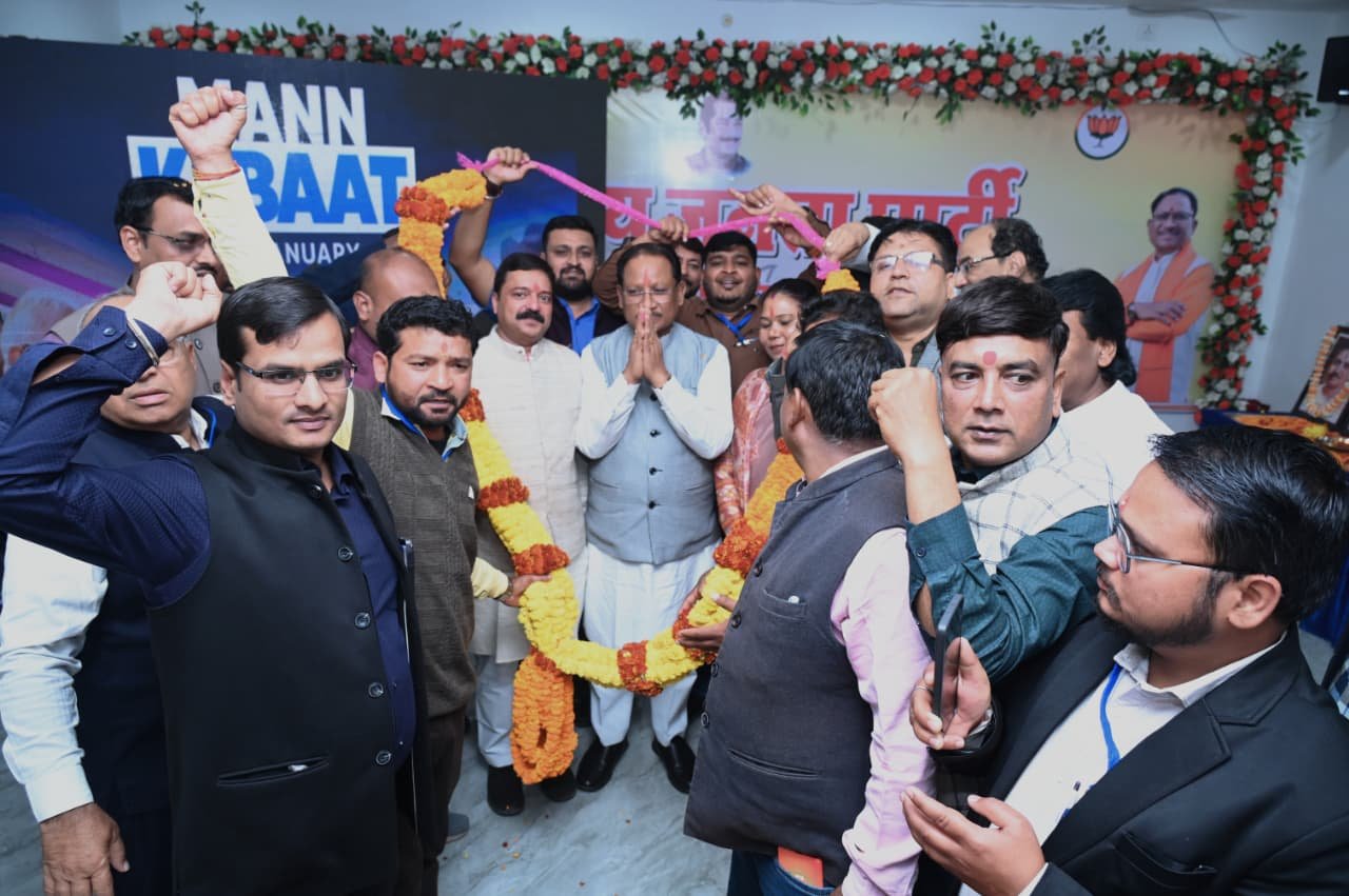 जशपुरनगर 25 जनवरी 2026/ मुख्यमंत्री श्री विष्णुदेव साय ने आज कांसाबेल में जनप्रतिनिधियों एवं आम नागरिकों के साथ प्रधानमंत्री श्री नरेन्द्र मोदी की रेडियो वार्ता ‘मन की बात’ की 130वीं कड़ी सुनी। इस अवसर पर मुख्यमंत्री ने कहा कि मन की बात केवल एक कार्यक्रम नहीं, बल्कि यह देश की सकारात्मक सोच, नागरिक सहभागिता और राष्ट्र निर्माण की भावना को मजबूत करने वाला मंच है। आज की कड़ी में प्रधानमंत्री श्री मोदी ने अपने संबोधन में गणतंत्र दिवस और राष्ट्रीय मतदाता दिवस का उल्लेख करते हुए कहा कि मतदाता बनना किसी भी नागरिक के जीवन का महत्वपूर्ण पड़ाव है और इसे उत्सव के रूप में मनाया जाना चाहिए। उन्होंने युवाओं से 18 वर्ष की आयु पूर्ण होते ही मतदाता पंजीयन कराने की अपील की और लोकतंत्र को सशक्त बनाने में सक्रिय भागीदारी का आह्वान किया। प्रधानमंत्री ने स्टार्टअप इंडिया की 10 वर्षों की यात्रा का स्मरण करते हुए बताया कि आज भारत विश्व का तीसरा सबसे बड़ा स्टार्टअप इकोसिस्टम बन चुका है। उन्होंने युवाओं द्वारा एआई, अंतरिक्ष विज्ञान, ग्रीन हाइड्रोजन, बायोटेक्नोलॉजी जैसे क्षेत्रों में किए जा रहे नवाचारों की सराहना की और गुणवत्ता को देश के विकास का मूल मंत्र बताया। उन्होंने कहा कि अब हर भारतीय उत्पाद की पहचान टॉप क्वालिटी से होनी चाहिए।