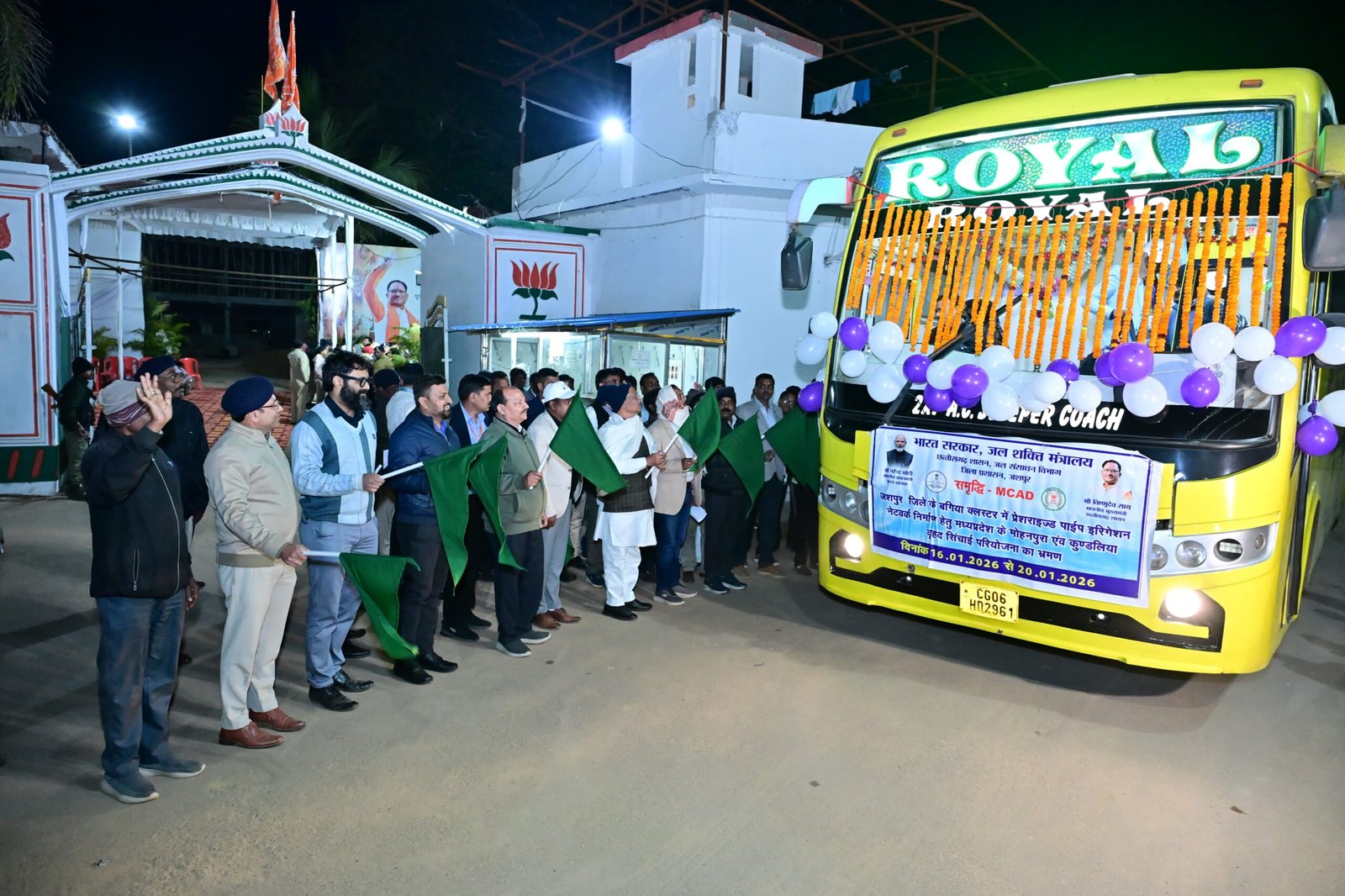 जशपुरनगर 16 जनवरी 2026/ मुख्यमंत्री श्री विष्णु देव साय ने जशपुर जिले में समृद्धि – कमांड क्षेत्र विकास एवं जल प्रबंधन आधुनिकीकरण (एमकैड) योजना के प्रभावी क्रियान्वयन की दिशा में एक और महत्वपूर्ण पहल की है। उन्होंने बगिया क्लस्टर में प्रस्तावित प्रेशराइज्ड पाइप इरिगेशन नेटवर्क निर्माण से पूर्व जिले के चयनित किसानों को 16 से 20 जनवरी 2026 तक मध्यप्रदेश की मोहनपुरा एवं कुंडलिया वृहद सिंचाई परियोजनाओं के अध्ययन भ्रमण के लिए विगत दिवस बगिया से रवाना किए। कलेक्टर के नेतृत्व में 13 गांव के 26 किसान एवं अधिकारी कर्मचारियों सहित कुल 49 सदस्य बस से बिलासपुर के लिए रवाना हुए। सभी सदस्य आज 11 बजे बिलासपुर से ट्रेन के माध्यम से मध्यप्रदेश के लिए रवाना होंगे। मुख्यमंत्री श्री विष्णु देव साय ने अपने निज निवास बगिया से स्वयं किसानों को शुभकामनाएँ देते हुए इस अध्ययन दल के बस को हरि झंडी दिखाकर रवाना किया। मुख्यमंत्री ने किसानों से चर्चा करते हुए कहा कि वे वहां की आधुनिक सिंचाई प्रणालियों, जल प्रबंधन तकनीकों, फसल पैटर्न और जल उपभोक्ता समितियों के कार्यप्रणाली का बारीकी से अवलोकन करें ताकि बगिया समृद्धि परियोजना को जिले का आदर्श मॉडल बनाया जा सके।