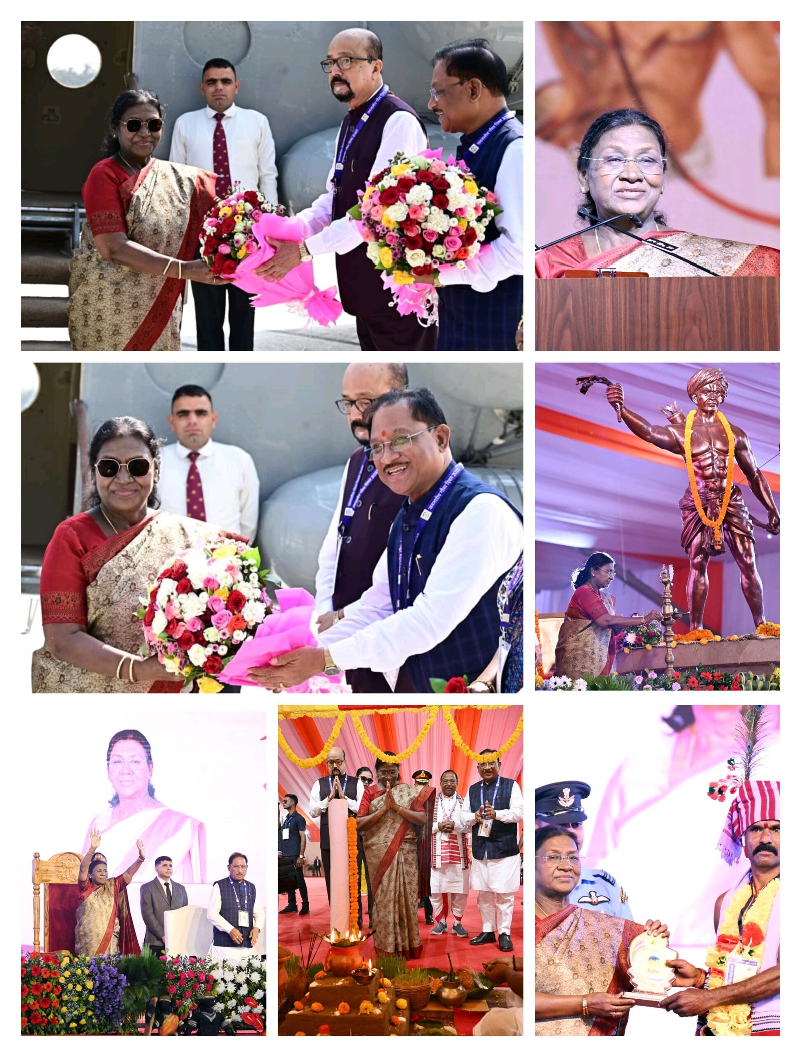 सरगुजा 20 नवंबर 2025/राष्ट्रपति श्रीमती द्रौपदी मुर्मु ने आज छत्तीसगढ़ सरकार द्वारा छत्तीसगढ़ के अंबिकापुर, सरगुजा में आयोजित ‘जनजातीय गौरव दिवस’ समारोह में अपनी गरिमामयी उपस्थिति दर्ज कराई।